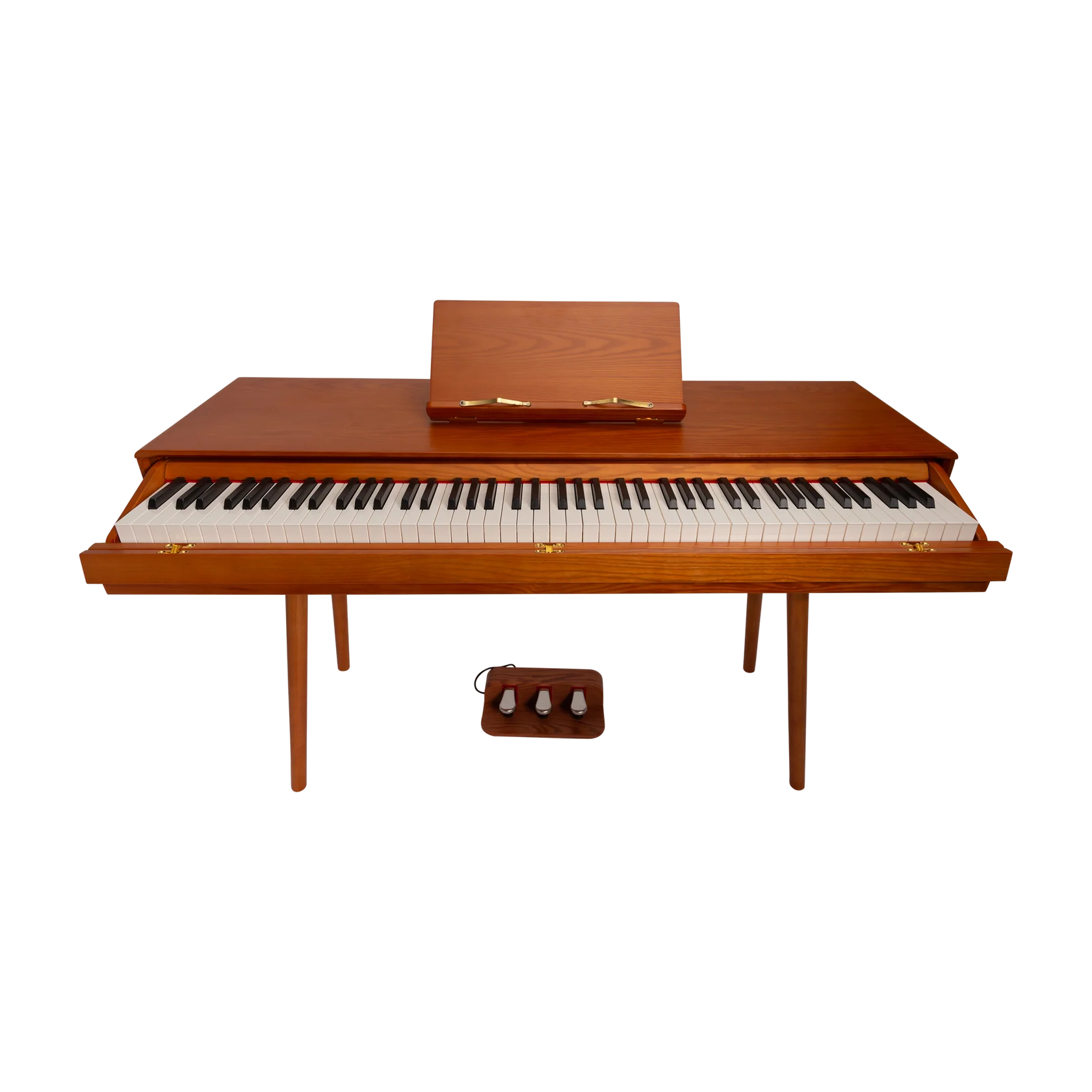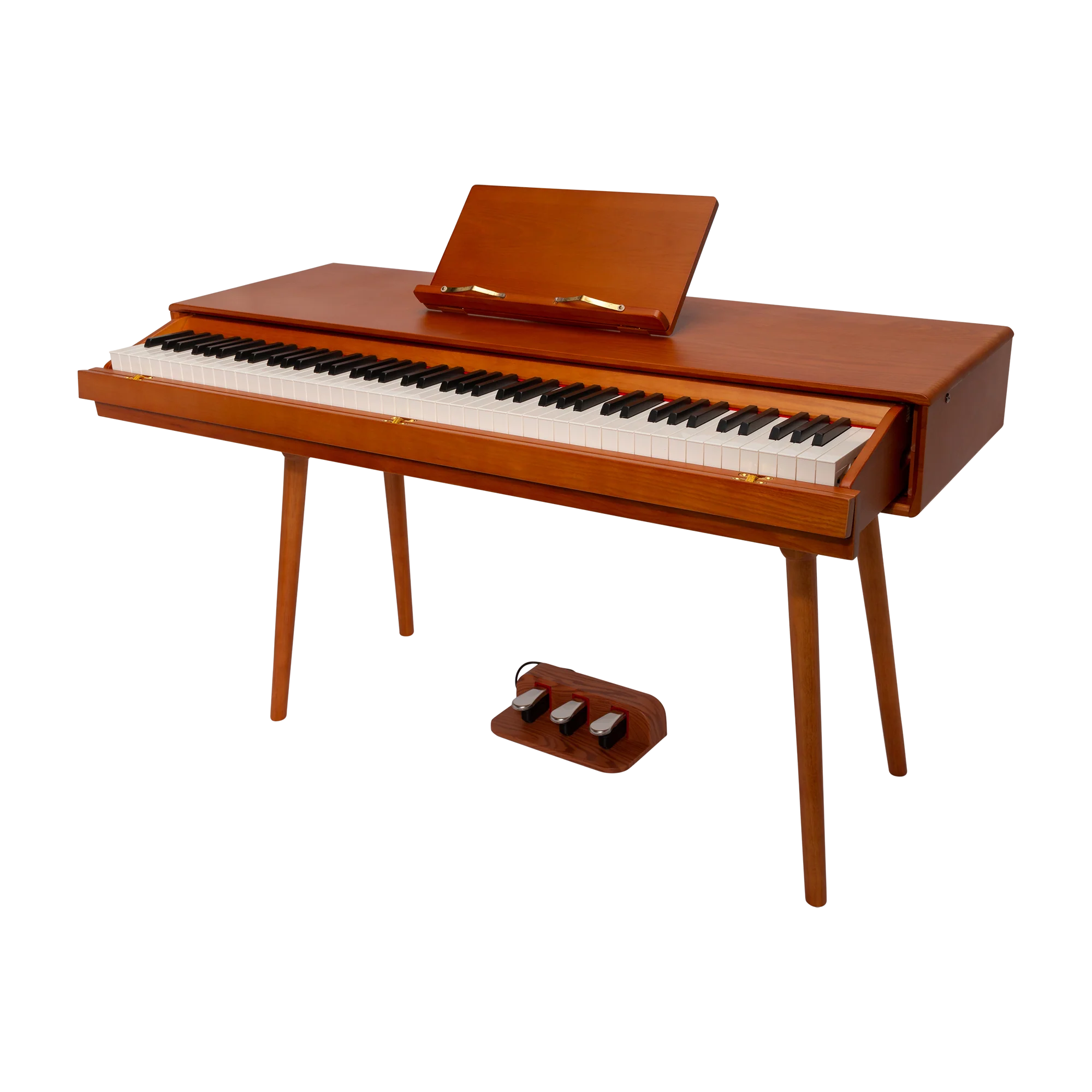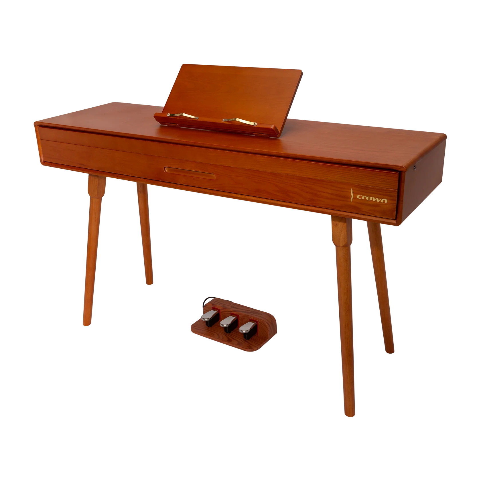 The Crown CMDP-909 offers more than just beautiful music — it’s a multifunctional piece of furniture for the modern home. Finished in elegant woodgrain, this upright digital piano features a unique pull-out keyboard design that slides seamlessly into the cabinet when not in use, instantly transforming the unit into a stylish desk or table.