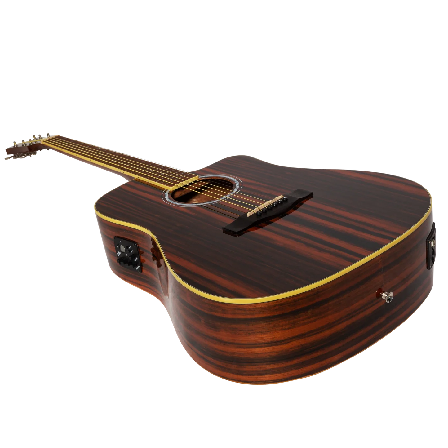 The new Martinez '51 Series' Acoustic-Electric Dreadnought Cutaway Guitar Amara (Gloss) combines head turning good looks, with classic dreadnought construction, to deliver a uniquely beautiful playing and sounding guitar.